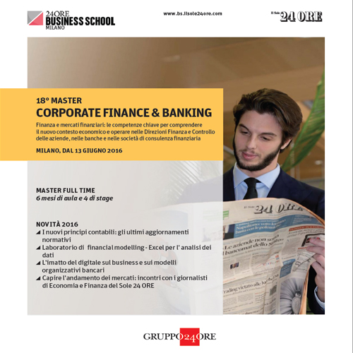 Prenderà avvio il prossimo 13 giugno a Milano, la 18esima edizione del Master Corporate Finance & Banking della Business School del Sole 24 ORE. Un percorso innovativo che vuole fornire ai giovani le competenze chiave per comprendere il nuovo contesto economico e finanziario e inserirsi nelle aree più strategiche per lo sviluppo del business.
