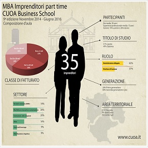 Il 21 novembre è iniziata la IX edizione dell’MBA Imprenditori, percorso part time, con 35 imprenditori in aula, tra cui 9 donne: 22  amministratori delegati e direttori generali, nonché 13 responsabili di funzione.