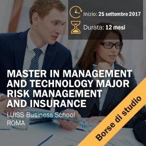 Un’opportunità per lanciare la tua carriera acquisendo nuove competenze nel pianificare e attuare piani di Risk Management con un percorso di studi all’avanguardia. Il Master in Management and technology – Major risk management and insurance della LUISS Business School fornisce agli studenti le competenze per progettare e realizzare un piano di Risk Management, con un valore immediatamente spendibile nella realtà aziendale. Realizzato in partnership con MAG-JLT Group, uno dei maggiori gruppi di brokeraggio assicurativo italiano con un esteso network internazionale, sono previste 10 borse di studio a copertura totale destinate agli studenti più meritevoli.
