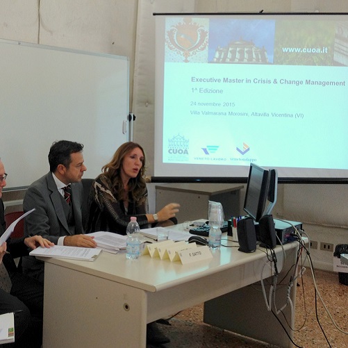 “Nell’attuale scenario di mercato – ha commentato Francesco Gatto - Responsabile CUOA Finance – i progetti di turnaround aziendale e di change management assumono un valore e un’importanza strategica per sostenere e rilanciare le economie dei territori. Il tema assume un’importanza ancora più rilevante per le piccole e medie aziende, che costituiscono l’ossatura del nostro sistema produttivo, dove ai fallimenti delle società corrisponde normalmente la chiusura delle aziende, il loro smembramento, la messa in asta dei singoli beni. Grazie all’importante sostegno di Veneto Lavoro e Veneto Sviluppo – prosegue Gatto – abbiamo così potuto sviluppare l’Executive Master in Crisis & Change Management, che si vuole porre come importante strumento per figure manageriali di azienda e consulenti professionisti che affiancano e guidano il management o la proprietà nella definizione di un piano industriale di rilancio credibile e sostenibile e che possa, quindi, essere anche sostenuto dal sistema bancario. Affrontare con successo progetti di risanamento richiede quindi forti competenze in materia di strategia e business d’impresa, rendendo la crisi aziendale un «mestiere da specialisti», gli stessi specialisti che da anni formiamo e supportiamo qui al CUOA”.