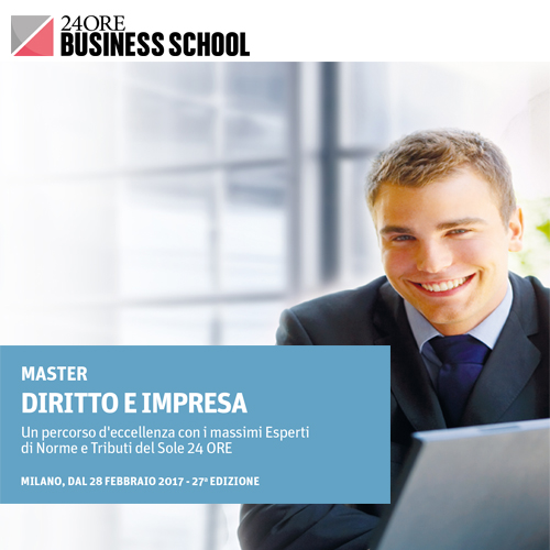 In partenza il 28 febbraio a Milano la 27esima edizione del Master Diritto e Impresa, un percorso full time organizzato dalla Business School del Sole 24 ORE, che vuole trasferire le competenze necessarie per avviare con successo i giovani alla professione di giurista d'impresa, un ruolo di primaria importanza che richiede conoscenze specifiche e approfondite e un approccio interdisciplinare.