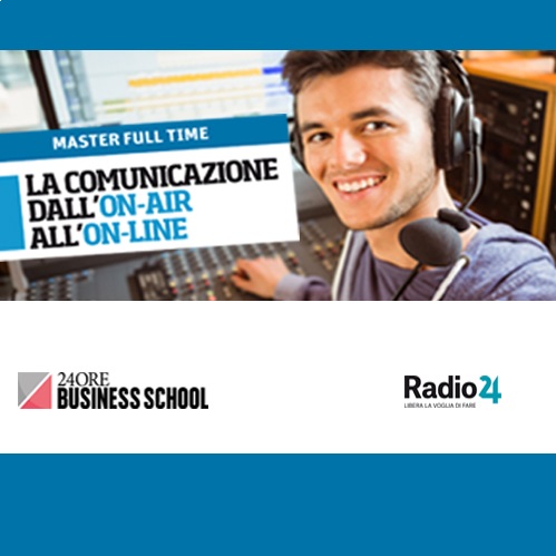 Avrà inizio il 27 novembre a Milano la 2° edizione del Master Radio, Tv e Web Content, un percorso full time organizzato dalla Business School del Sole 24ORE in collaborazione con Radio24, con lo scopo di fornire gli strumenti e le competenze per affrontare le diverse professioni del mondo radiofonico e televisivo, dalla creazione di un palinsesto per la radio alla realizzazione di un programma, dal lavoro autoriale a quello legato al management, al marketing e agli eventi.