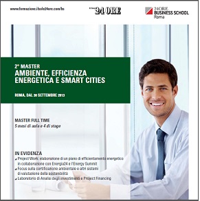 Il Master Ambiente, efficienza Energetica e Smart Cities del Sole 24 ORE prepara nuove figure professionali specializzate sui temi dello sviluppo ambientale, sulla sostenibilità e efficienza energetica e sulla progettazione smart cities.