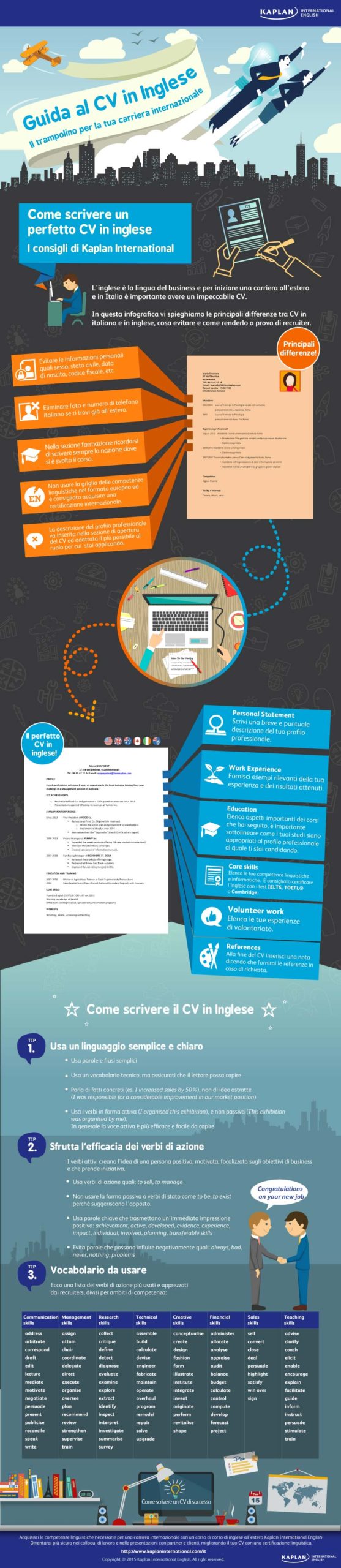 Non farti trovare impreparato! Nell’infografica di Kaplan International English trovi i consigli degli insegnanti dei corsi di Business English Kaplan per scrivere un CV in inglese a prova di recruiter.