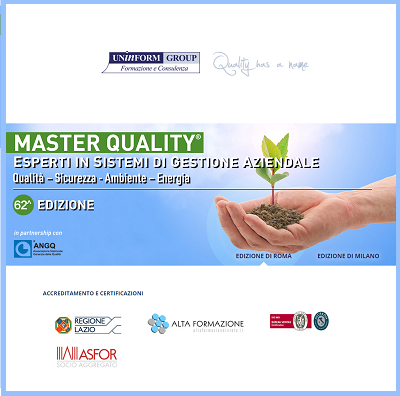 Tutto questo rende il Master Quality il più importante percorso formativo in Italia su i Sistemi di Gestione Integrata - Qualità, Sicurezza, Energia e Ambiente.