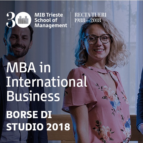 MIB Trieste School of Management lancia la 29ma edizione dell’MBA in International Business il prossimo 1 ottobre a Trieste. Un Master of Business Administration riconosciuto in oltre 80 paesi (accreditato ASFOR in Italia e AMBA nel mondo). È un Master che ti permette di acquisire una visione manageriale e capacità personali per lavorare nei settori più disparati, sfruttando appieno intelligenza emotiva e creative thinking.