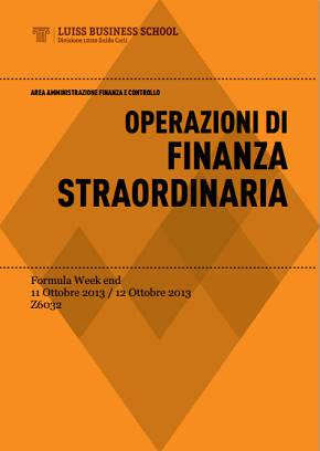 Il corso affronta il tema dell'analisi delle operazioni di finanza straordinaria sotto il profilo tecnico e strategico ed ha l'obiettivo di trasferire gli strumenti operativi per realizzare con successo le principali operazioni societarie straordinarie, comprenderne i meccanismi e valutarne la convenienza economica.