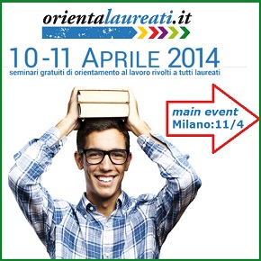 La due giorni ha il suo main event a Milano: presso il Centro per l'Impiego della Provincia di Milano si terrà il giorno 11 aprile una manifestazione che vedrà la presenza di consulenti, orientatori, business school, aziende. Sarà una giornata speciale, destrutturata; un'area accoglierà i desk degli operatori per attività di consulenza one-to-one e per il servizio di cv check, un auditorium e due sale in parallelo tratteranno le tematiche del cv anche in inglese, del colloquio di lavoro, delle professioni emergenti, del mondo social e tante altre soprese. Uno spettacolo di un "formattore", avente come traccia il lavoro dei giovani, renderà ancora più gradevole e divertente la giornata.