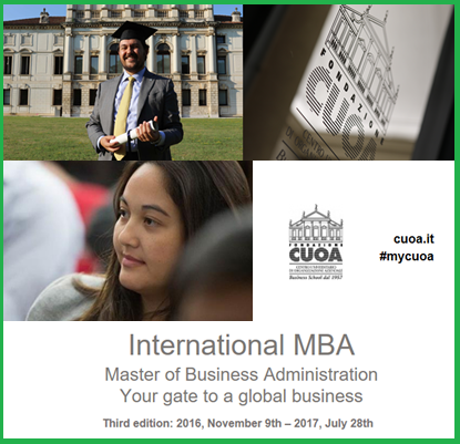 CUOA is a leading Business School and one of the most active centers in Italy for the development and promotion of managerial and entrepreneurial skills. One of the most distinctive features of CUOA Business School is its history and its strong, rooted connection to the territory, which can boast excellent entrepreneurs and executives. Not only do over 3.500 local businesses collaborate with the Business School, but CUOA has also developed collaborations with foreign partners in order to offer successful international training courses which have been attended by students from  different countries and led to the development of many projects in various parts of the globe.