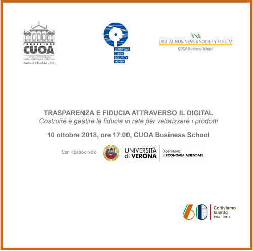 Costruire e gestire la fiducia in rete per valorizzare i prodotti 10 ottobre 2018, ore 17.00, CUOA Business School
