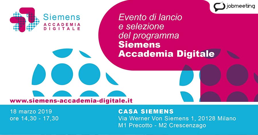 Un’occasione unica per avvicinarti al mondo del lavoro ed entrare a contatto con un’azienda prima di terminare gli studi! Il primo passo? Iscriverti cliccando sul link in fondo su e partecipare all’evento di lancio del 18 marzo 2019 presso Casa Siemens, la nuova sede a Milano.