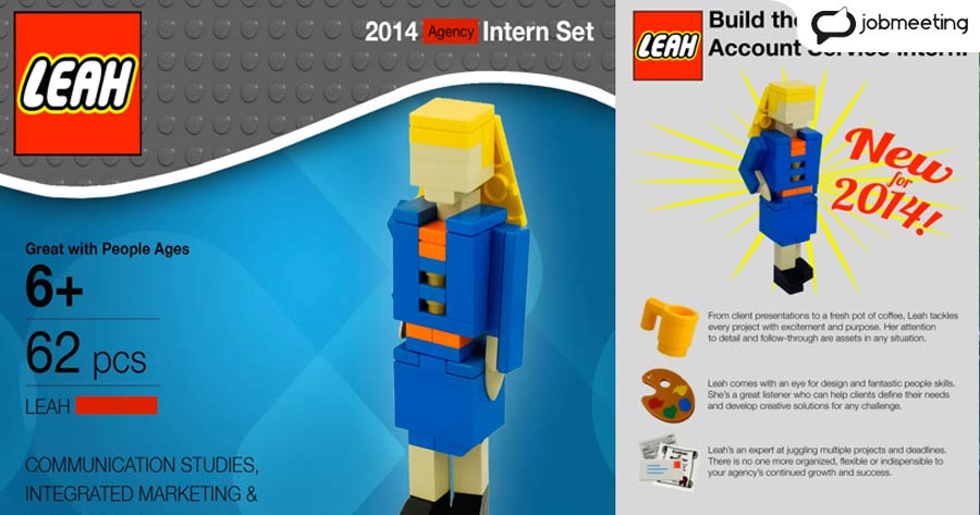 Anche la protagonista del nuovo appuntamento di CV STRAORDINARI, Leah Bowman, 20enne di origine svedese, non manca di creatività e originalità. Per catturare l'attenzione dei recruiters ha creato una miniatura di se stessa con i Lego, i famosi mattonicini assemblabili che, da oltre 60 anni, stuzzicano la fantasia dei bambini di tutto il mondo. Leah ha acquistato i mattoncini necessari per la costruzione e ha successivamente inviato all'agenzia pubblicitaria dove sognava di lavorare la versione giocattolo di se stessa con tanto di istruzioni per il montaggio e presentazione delle sue capacità: "Ho sempre amato i Lego - ha scritto Leah - e ho creato questo set per evidenziare la mia creatività, le mie capacità, e lo spirito di iniziativa”.