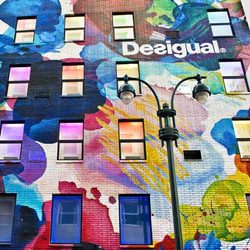 "Come suggerisce il nome, Desigual non è una marca di vestiti uguale alle altre. E chi passa per Barcellona, sede della casa madre, difficilmente resiste alla tentazione di fare almeno una sosta in uno degli innumerevoli e coloratissimi negozi disseminati in quasi tutti i quartieri.
