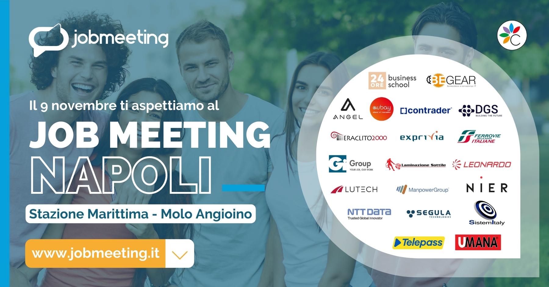 Mercoledì 9 novembre non mancare al Job Meeting Napoli! Nella splendida cornice della Stazione Marittima al Molo Angioino direttamente sul mare, dalle 9 alle 16.30, importanti aziende nazionali e internazionali saranno presenti con i propri selezionatori per incontrare e assumere giovani laureati di tutte le aree di studio.