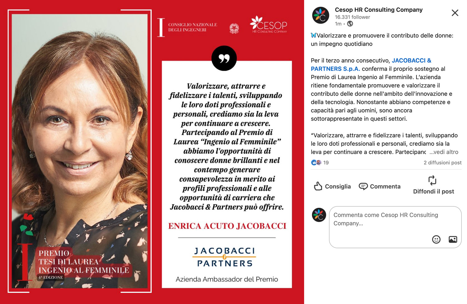 Scopri perché Jacobacci & Partners aderisce al Premio Ingenio al Femminile